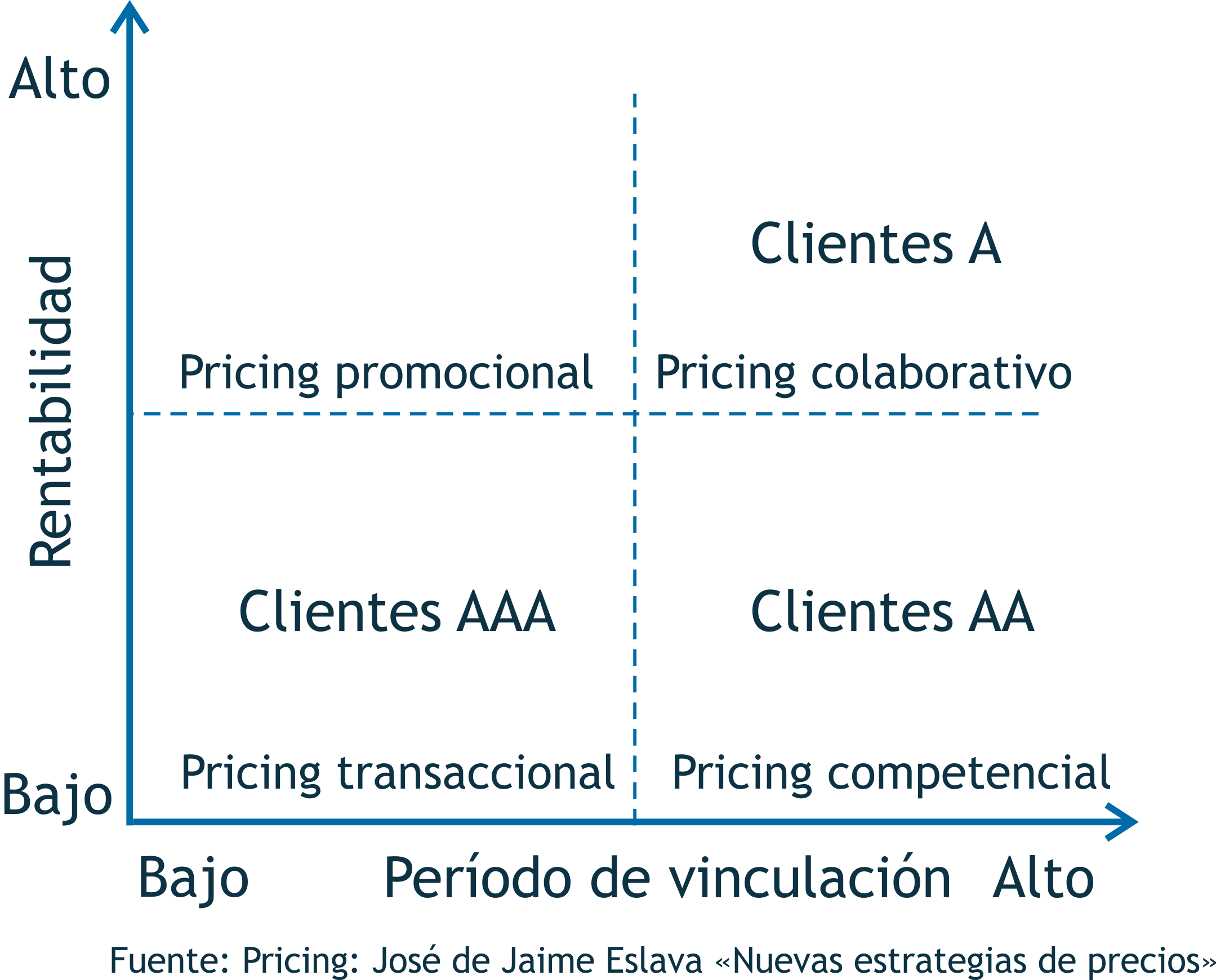 Sin embargo, el nuevo director de marketing considera que clientes con una misma facturación pueden diferir en costes y por lo tanto presentar diferentes rentabilidades. Por ese motivo decide diseñar una estrategia de pricing que contemple la rentabilidad y período de vinculación (Antigüedad) de la cartera de clientes.